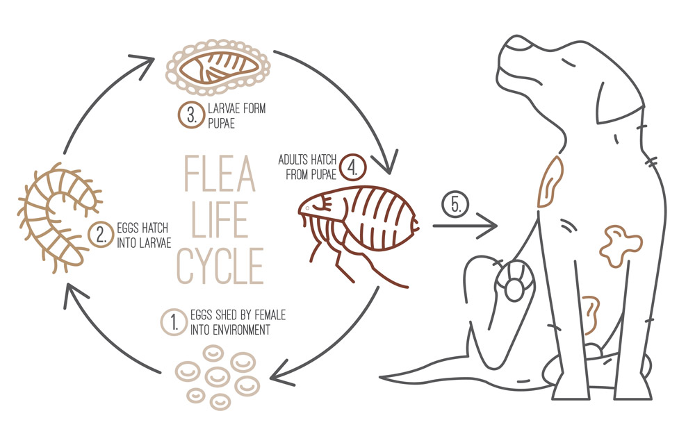 Only about 5% of a flea infestation lives on your dog; the remaining 95% exists as eggs, larvae, and pupae in your carpets, furniture, and bedding. If you only treat your pets, new fleas will simply hatch from your carpet and re-infest them. You must: